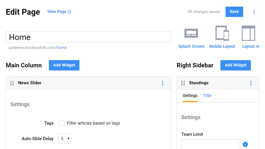 Customize pages with various layouts and widgets to choose from. Save time by grouping widgets or making them reuseable across multiple pages.
