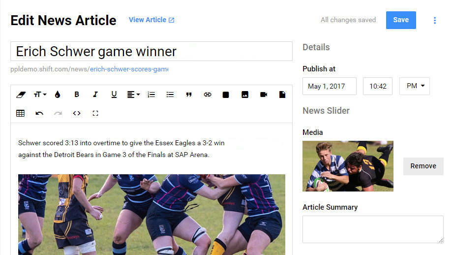 Post news articles with ease. Enhance your article with a featured photo or video.